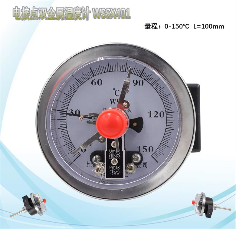 電接點(diǎn)雙金屬溫度計(jì),WSS401X,尾長(zhǎng)100mm,150℃,螺紋M27*2 ...