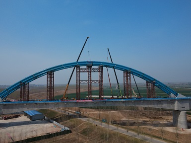 032025.07河南二建集團(tuán)鋼結(jié)構(gòu)有限公司雄商高鐵(梁山段)黃河特大橋鋼拱肋順利合龍 -