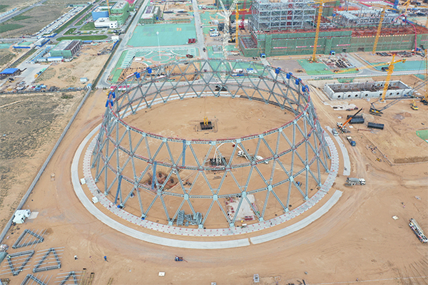 172020.07國(guó)電雙維電廠新建工程鋼結(jié)構(gòu)間冷塔項(xiàng)目 1#間冷塔第三層順利完成合攏 -