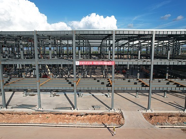 222024.08億緯馬來西亞一期項(xiàng)目施工總承包工程化成車間二標(biāo)段主體鋼結(jié)構(gòu)順利封頂
